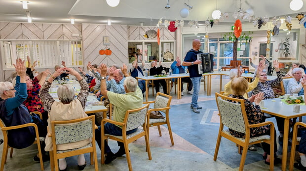 Am Mittwoch, den 24. September, hatte der Förderverein die Bewohner des Kleeblattheims zum diesjährigen Herbstfest eingeladen. Im herbstlich sehr schön geschmückten „Wohnzimmer“ des Hauses begrüßte Heinz Prochnau als Vorsitzender des Fördervereins herzlich alle Gäste sowie ganz besonders Heiner Ziegler mit seinem Akkordeon. Herrn Ziegler gelang es von Beginn an, mit bekannten Oldies und Volksliedern, eine lockere und fröhliche Stimmung zu zaubern. Musikwünsche erfüllte er gerne und es wurde begeistert mitgesungen und geklatscht. Anschließend gab der Ehrenvorsitzende des FV, Horst Hippmann, zur Freude seiner Zuhörer sein Heimatlied „Egerland“ zum Besten. Zwischenzeitlich schenkten die Ehrenamtlichen des Fördervereins neuen Wein aus und gegen 17.00 Uhr drang dann der Duft der bereits freudig erwarteten Kartoffel- und Zwiebelkuchen aus der Küche. Es schmeckte allen vorzüglich. Den Abschluss eines sehr schönen Nachmittags bildete das bereits zur Tradition gewordene Lied „Kein schöner Land“, das gemeinsam von allen Anwesenden gesungen wurde. Mit viel Applaus dankten die Gäste sowohl Herrn Heiner Ziegler als auch dem Förderverein für den unterhaltsamen Nachmittag.