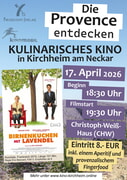 Der Arbeitskreis Gemeindepartnerschaft und das Kinomobil laden herzlich zu einem besonderen kulinarischen Kinoabend ein. Freuen Sie sich auf einen stimmungsvollen Film aus der Provence, begleitet von französischem Flair und feinen Köstlichkeiten.