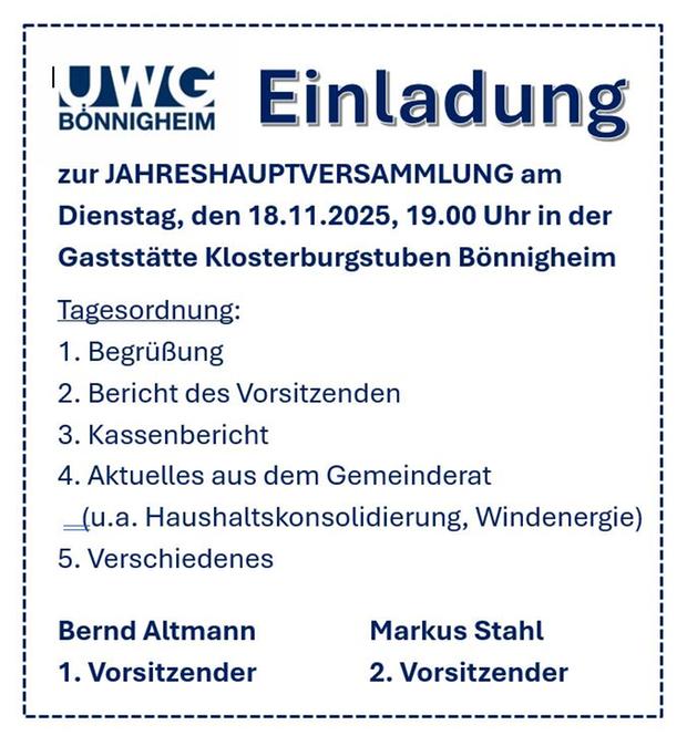 Rubrikenübersicht > Stadt Bönnigheim > Parteien, Wählervereinigungen (Bönnigheim) > UWG