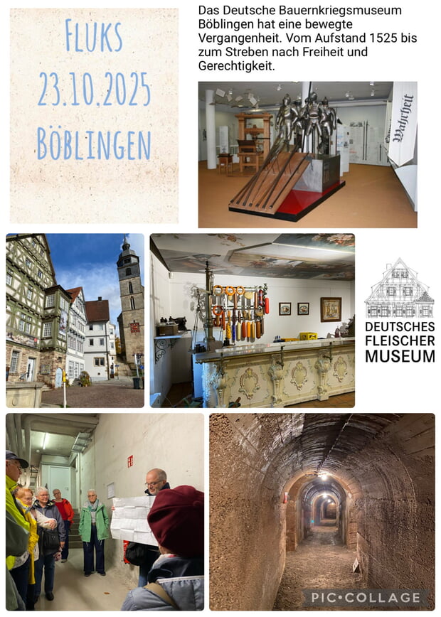 Die Stadtführung in Böblingen musste aufgrund des Windes abgekürzt werden. Danach war die historische Luftschutzstollen-Führung unter dem Schlossberg beeindruckend – eine eindrucksvolle Atmosphäre mit aufschlussreichen Einblicken.
