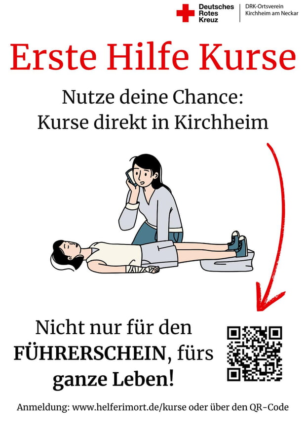 Rubrikenübersicht > Gemeinde Kirchheim am Neckar > Vereinsnachrichten (Kirchheim) > DRK Ortsverein (Kirchheim) > Erste-Hilfe-Kurse 2025: noch Plätze frei