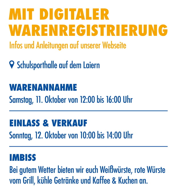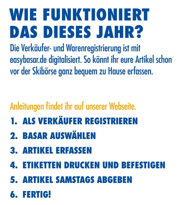Kommenden Sonntag, 12. Oktober findet unsere traditionelle Skibörse statt. Der Verkauf startet um 10.00 Uhr, die Warenannahme erfolgt am Samstag, 11.10. von 12.00 bis 16.00 Uhr.