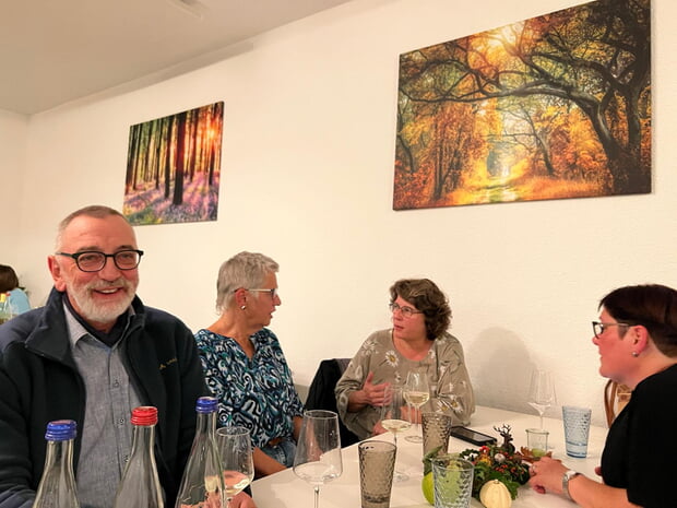 Mit freudigem Staunen und bei angeregten Gesprächen füllten die Anwesenden die liebevoll renovierten Räume mit Leben. Spürbar waren die gegenseitige Wertschätzung und Offenheit der Anwesenden füreinander. Jeder leistet mit seinem Engagement einen wichtigen Beitrag für die ganze Gesellschaft. „Dies wertzuschätzen ist unser Anliegen“, betonte Martina Braun in ihrer Begrüßung. Gemeinsam mit ihrem Mann, ihrem Sohn und einem engagierten Handwerkerteam hatte sie die Räume in der Zeppelinstraße mit viel Liebe zum Detail und großem Einsatz renoviert. Die Gäste nahmen an herbstlich dekorierten Tischen Platz, genossen das leckere Menü, standen plaudernd an der Theke und ließen die neue Atmosphäre auf sich wirken. Die Räumlichkeiten mit einer modernen Ausgabeküche bieten künftig alles, was für die Verpflegung kleiner wie großer Gesellschaften wie Trauercafé, Geburtstage oder Workshops nötig ist.