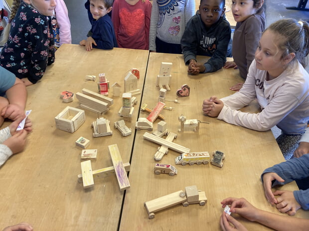 Am 14. Oktober erlebte die Klasse 2b einen tollen Ausflug zur experimenta nach Heilbronn. Am Vormittag konnten die SchülerInnen im Kurs „Bauen und Sägen“ selbst Hand anlegen und ein eigenes Werkstück herstellen. Alle sägten, bohrten und hämmerten motiviert, bis am Ende das selbstentworfene Stück aus Holz fertiggestellt war. Stolz wurden die „Kunstwerke“vorgeführt und von allen bestaunt.