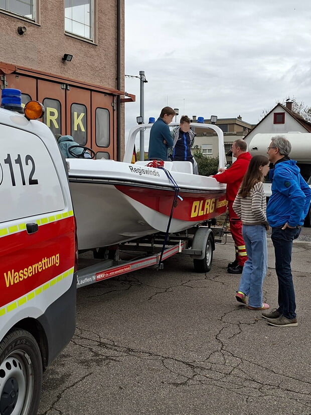 Unterstützung kam auch von der DLRG Ortsgruppe Lauffen a. N., die mit ihrem Einsatzboot und einer Drohne für zusätzliche Praxisnähe sorgte. So konnten die Kinder und Jugendlichen sich praxisnah über das Bootswesen und die Drohnenarbeit informieren.