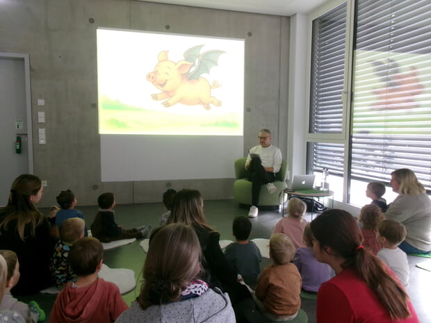 Als Ergänzung zu unserem Artikel zeigen wir zwei Fotos, welche die Stimmung der Lesung und die Freude der Kinder widerspiegeln.