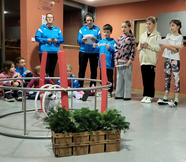 Am Dienstag, 9.12.2025 fand in der Schulsporthalle das Rhönrad Adventsfenster statt. Zahlreiche kleine und große Besucherinnen und Besucher waren gekommen, um die liebevoll gestaltete Mitmach-Geschichte zu erleben, die von den jungen Rhönrad-Talenten des TVKs vorgetragen wurde.