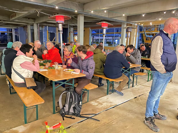 Im Erdgeschoss findet die Mensa ihren Platz, die über raumhohe Fenster natürlich beleuchtet wird und auch für Veranstaltungen genutzt werden kann. Im ersten Obergeschoss entsteht eine moderne Bücherei mit hoher Aufenthaltsqualität und vielfältigen Möglichkeiten - auch unabhängig vom Schulbetrieb. Im zweiten Obergeschoss entstehen sechs moderne Klassenzimmer und ein Differenzierungsraum für die Realschule. Vier Klassen sind als Cluster konzipiert und gruppieren sich um einen zentralen offenen Lernbereich mit natürlicher Beleuchtung. Eine barrierefreie Erschließung des gesamten Gebäudes wird durch den Einbau von Aufzügen gewährleistet. Im Januar 2026 wird der Innenausbau beginnen. Nach dem Rundgang bewirtete ein Team des Bauhofs die Gäste mit Speis' und Getränken. - Der Jahresrückblick zeigt Momentaufnahmen des Baufortschrittes.