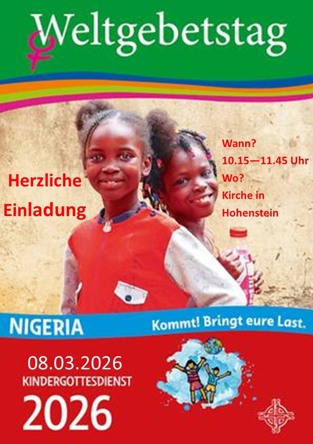 10.15 Uhr Weltgebetstag der Kinder in der Dorfkirche in Hohenstein (alle Kinderkirchen aus Bönnigheim, Hofen und Hohenstein)
