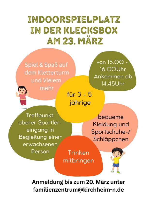 Rubrikenübersicht > Gemeinde Kirchheim am Neckar > Amtliche Bekanntmachungen (Kirchheim) > Schulen und Kindergärten > Kommunales Kinderhaus > Familienzentrum > Indoorspielplatz am 23. März