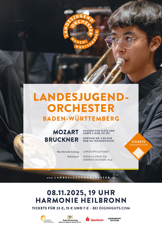 Am 8. November 2025 gastiert das Landesjugendorchester um 19.00 Uhr in der Harmonie Heilbronn (Maybach-Saal).