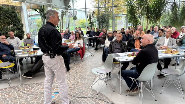 Am 19. Oktober feierte die Kirchengemeinde wieder Männersonntag. „Männer mit Leidenschaft“ war der Titel. Das Team von Männer unterwegs hatte in den Pavillon der Firma Staiger eingeladen. Es kamen knapp 60 Besucher, auch Frauen waren darunter. Der Landwirt und Paartherapeut Daniel Schmalzhaf aus Schwaigern predigte zum Thema „Pflanzen hat seine Zeit“. Seine sehr anschaulichen Worte beeindruckten die Besucher. Eine Audioaufzeichnung ist auf der Website der Kirchengemeinde anzuhören: